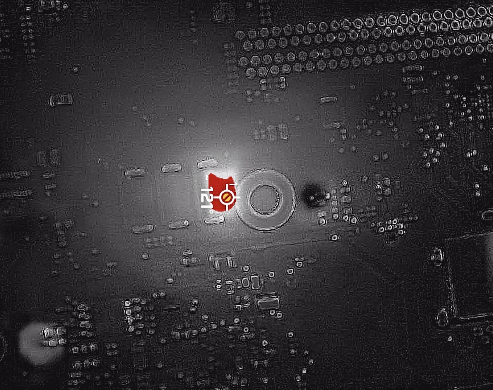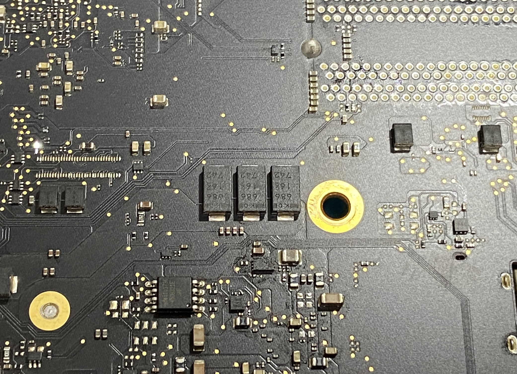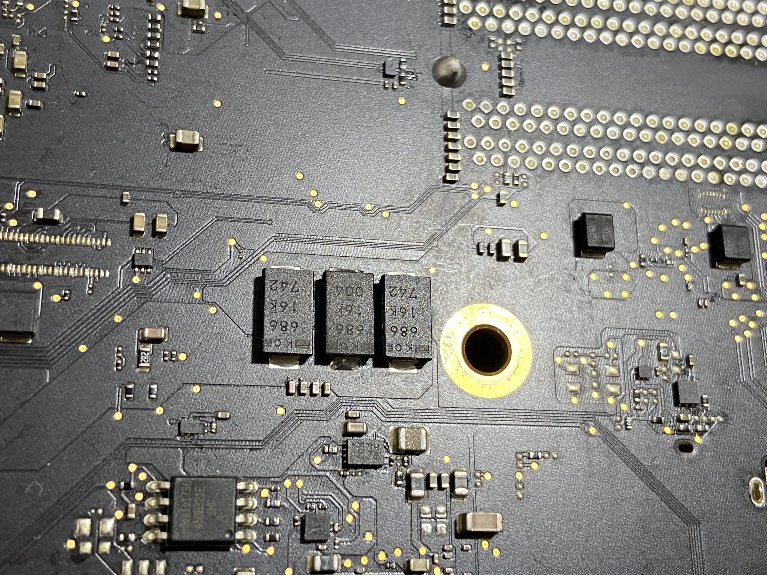 ロジックボードを更に調査し、ロジックボード上に無数にあるコンデンサのうち、1つのタンタルコンデンサの故障を検出しました。