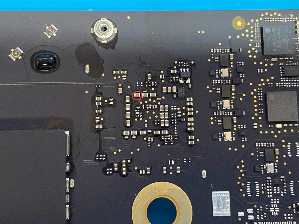 このMacStudioの電源が入らない本当の原因は、ロジックボード上のコンデンサ故障でした。