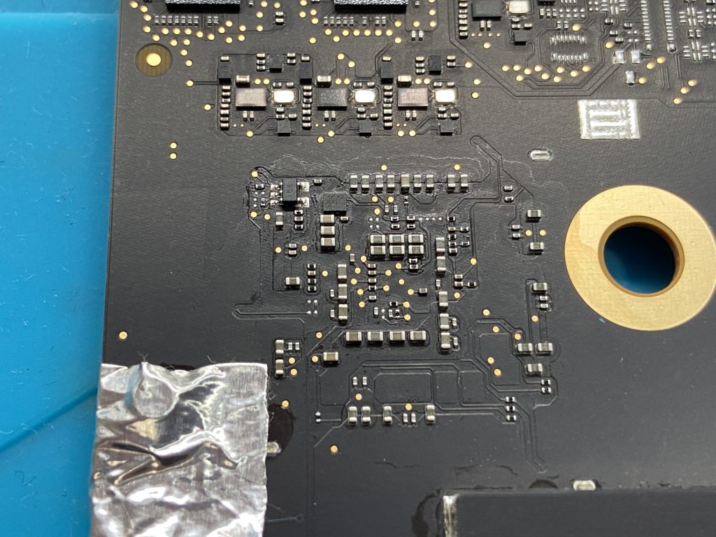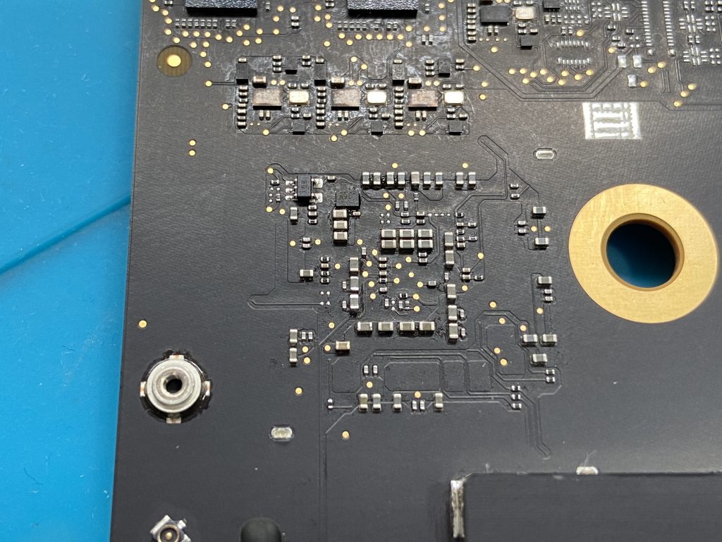 このため、弊社にご相談いただく修理の中でもMacStudioはそう多くはありませんが、MacStudioの電源が入らない症状もロジックボード上のコンデンサ故障によって発生することが判明しました。